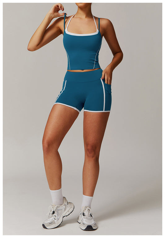 Matching two piece double strap vest & shorts set