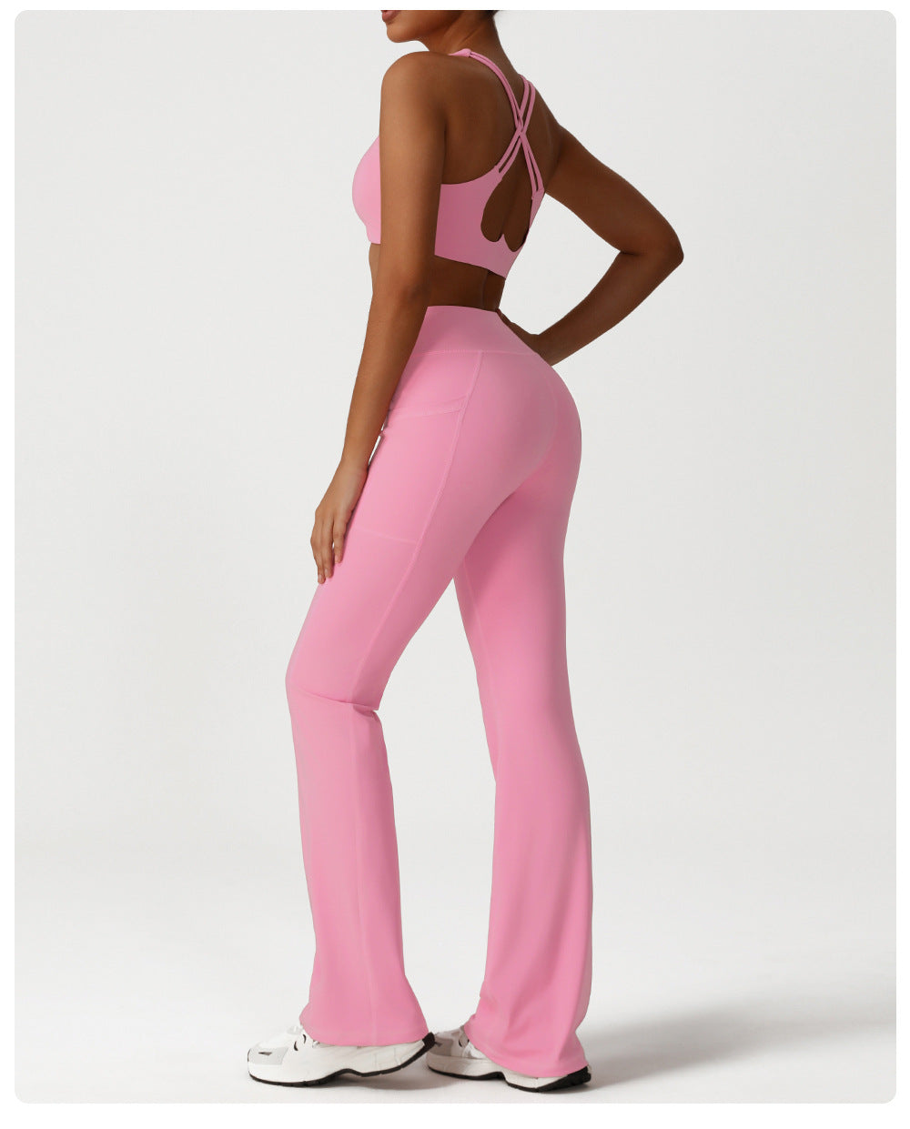 What sets this bra apart is its unique crossback design, providing a stunning backless look while ensuring maximum freedom of movement. The solid pattern and cutout elements add a touch of elegance, making it suitable for both gym sessions and casual outings.