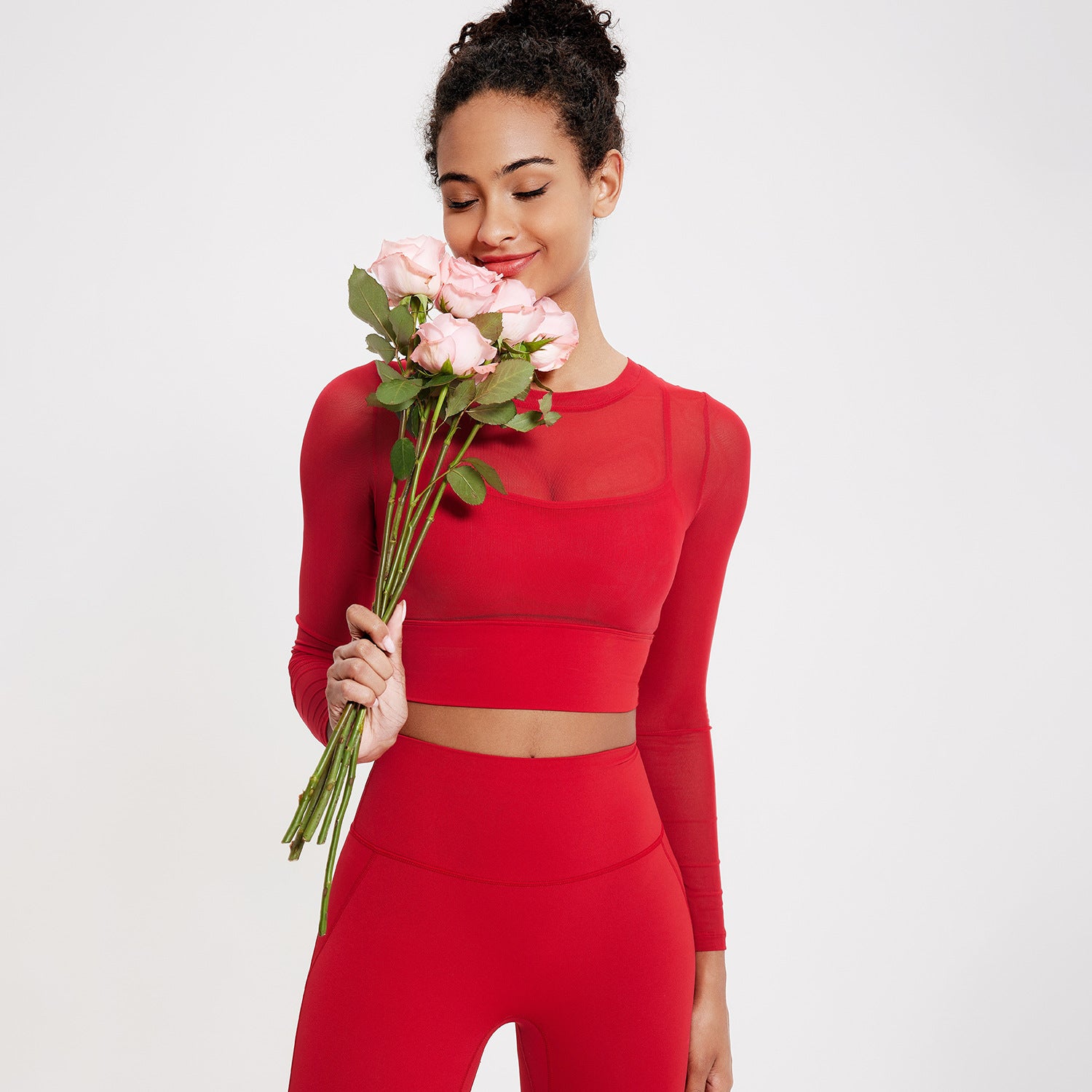 The solid pattern is enhanced with delicate lace, tulle, and fishnet elements, adding a touch of elegance to your casual wardrobe. With long sleeves and a short length, this versatile piece can be dressed up or down, making it a must-have for any fashion-forward individual.