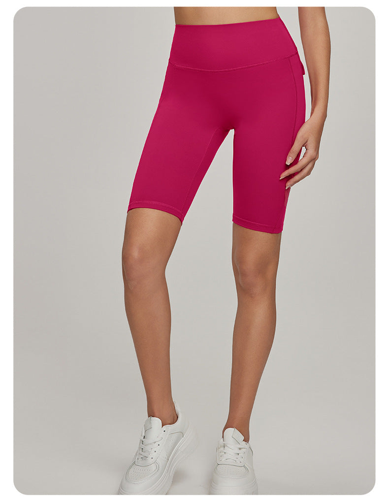 What sets these shorts apart is their high-rise design, ensuring a secure fit during any activity. The solid pattern adds a touch of elegance, making them versatile for both workouts and casual outings. Plus, the convenient pocket element allows you to carry essentials effortlessly.