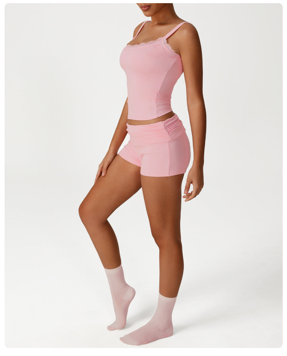 Introducing the Lace Trim Vest, a unique blend of sporty style and feminine elegance. Crafted from high-quality nylon, this slim-fit tank features exquisite lace, tulle, and fishnet patchwork, making it a standout piece in any wardrobe.