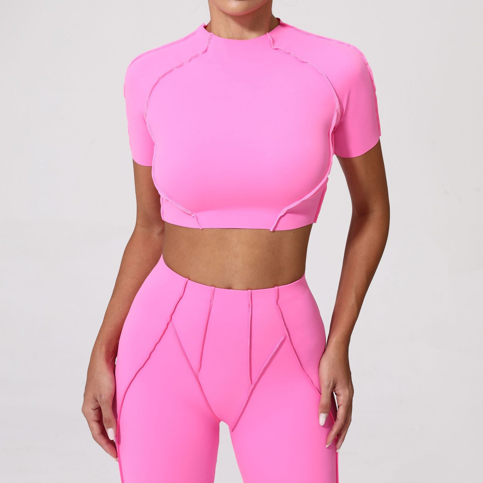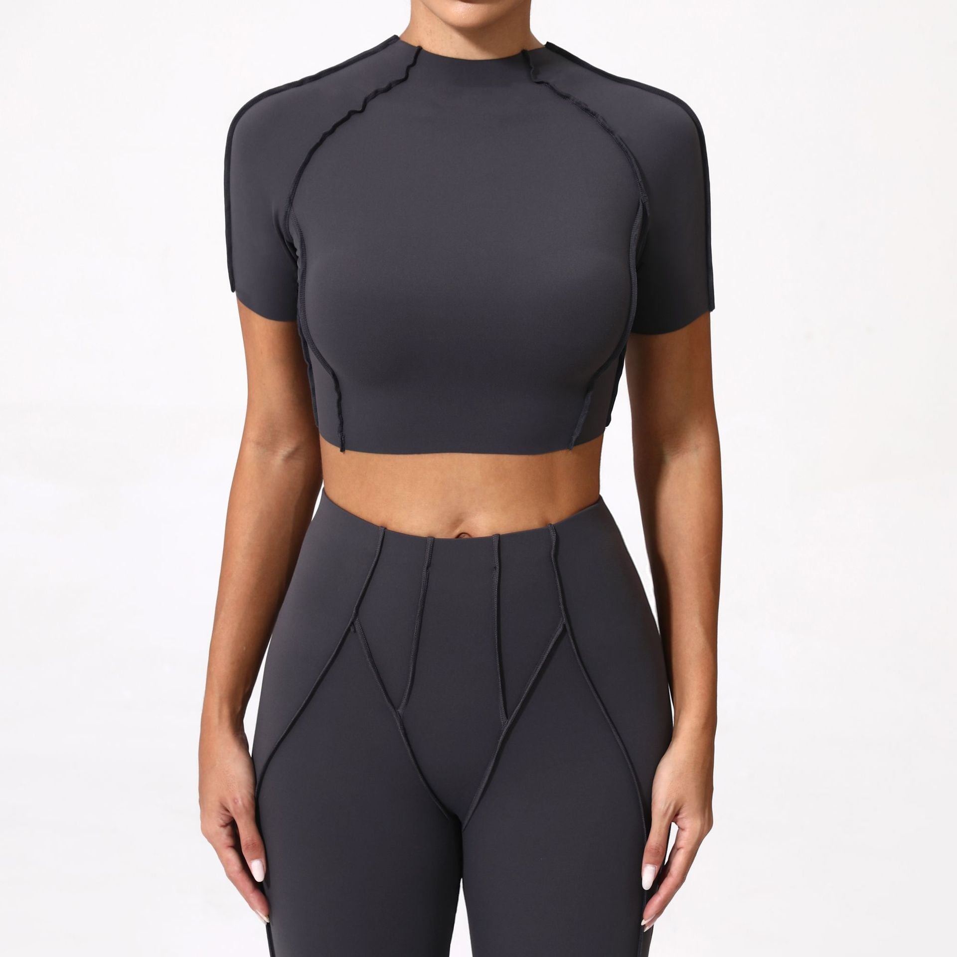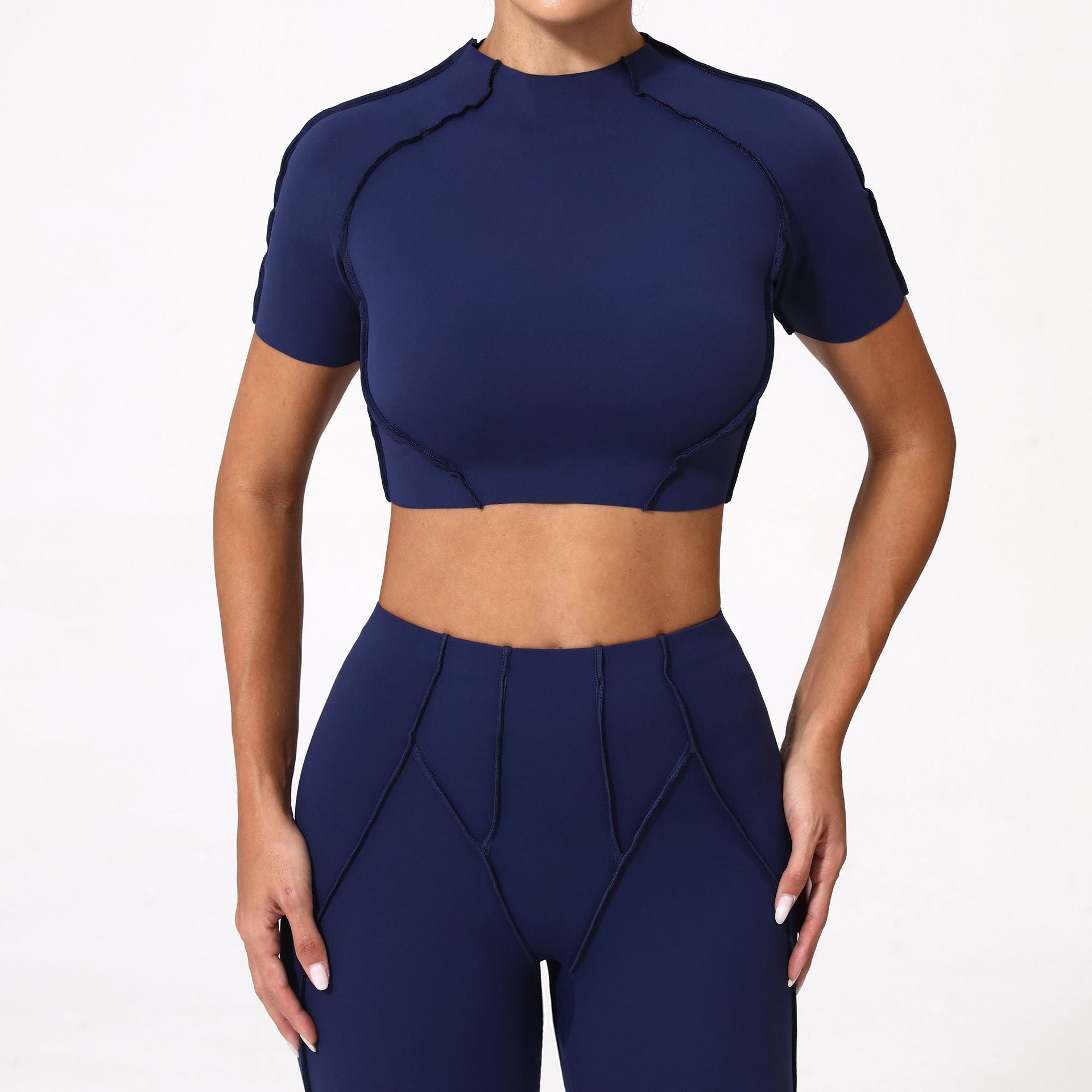 With its short sleeves and solid pattern, this top is perfect for any season, offering versatility for various occasions. The delicate lace, tulle, and fishnet elements add a touch of sophistication, making it a standout piece in your wardrobe. Elevate your activewear collection with this exceptional top that combines comfort and style effortlessly.