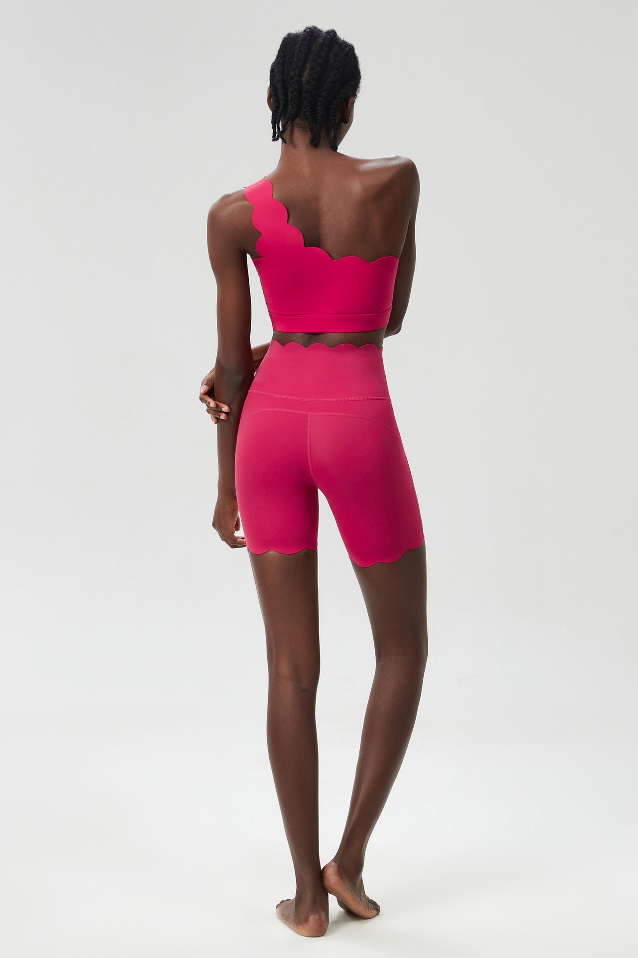 Introducing the Scallop Edge Fitness Shorts, where sporty style meets unparalleled comfort. Crafted from high-quality nylon, these shorts offer a slim fit that flatters every body type while ensuring maximum flexibility during workouts.